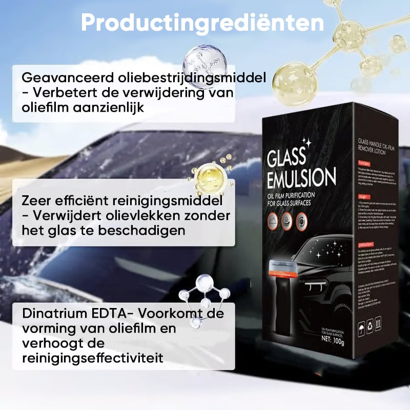 ✨ Krachtige Glas Ontsmetting: Verwijdert effectief oliefilms, vingerafdrukken en hardnekkige verontreinigingen van glasoppervlakken, en herstelt direct de kristalheldere zichtbaarheid.